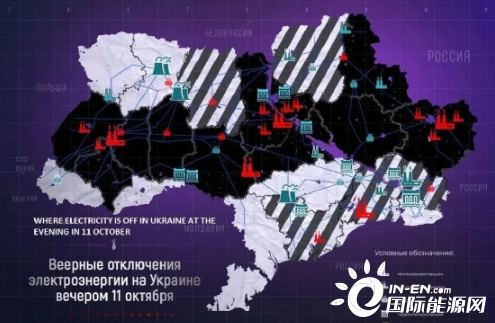 對(duì)烏克蘭電力系統(tǒng)打擊效果也初步顯現(xiàn)。相關(guān)信息顯示如下圖,圖中紅色代表損壞、黑色代表該地區(qū)停電,陰影代表該地區(qū)供電出現(xiàn)嚴(yán)重問題。